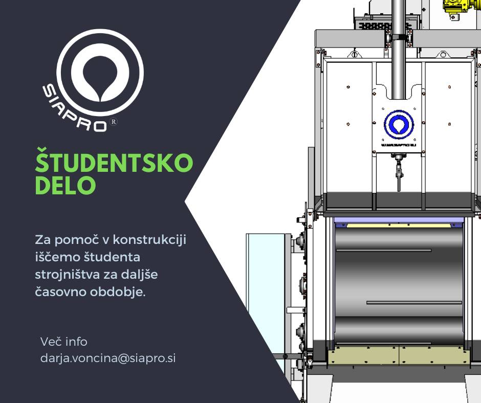 V našo ekipo vabimo študenta strojništva za pomoč v konstrukciji - za daljše časovno obdobje. Iščemo zanesljivega študenta, ki ga veseli tehnično risanje in konstrukcija.