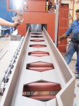 Napomene: Protočni uređaj je namenjen kontinuiranom peskarenju zavarenih elemenata. Zato što se obradak za vreme peskarenja ne vrti na uređaj je montirano 8 turbina, koje pokrivaju sve kote na obradku. Uređaj je opremljne sa 4 m zaptivenih tunela na ulazu i izlazu i ventilatorom za otprašivanje za odstranjivanje abraziva.